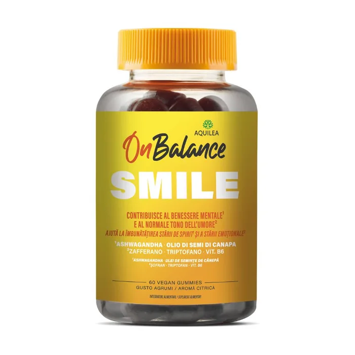 Aquilea On Balance Smile: una combinazione sinergica di Ashwagandha Sensoril, zafferano, triptofano e vitamina B6. Contribuisce al benessere mentale e al normare tono dell’umore.
